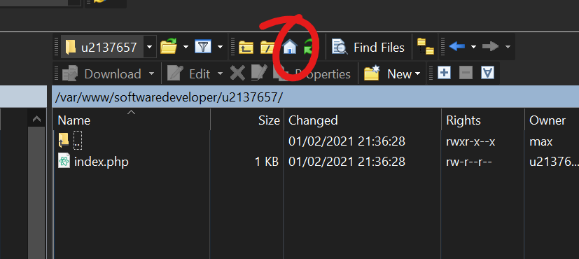 Hier kun je jouw website (files) uploaden. Als je de weg kwijt bent kun je altijd naar deze folder terugkeren door op het home knopje te drukken.